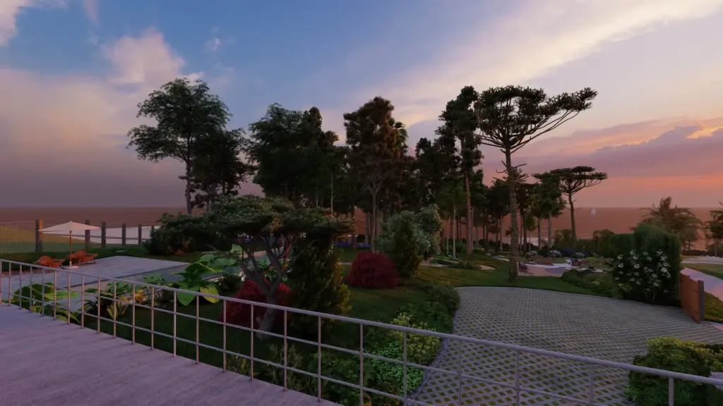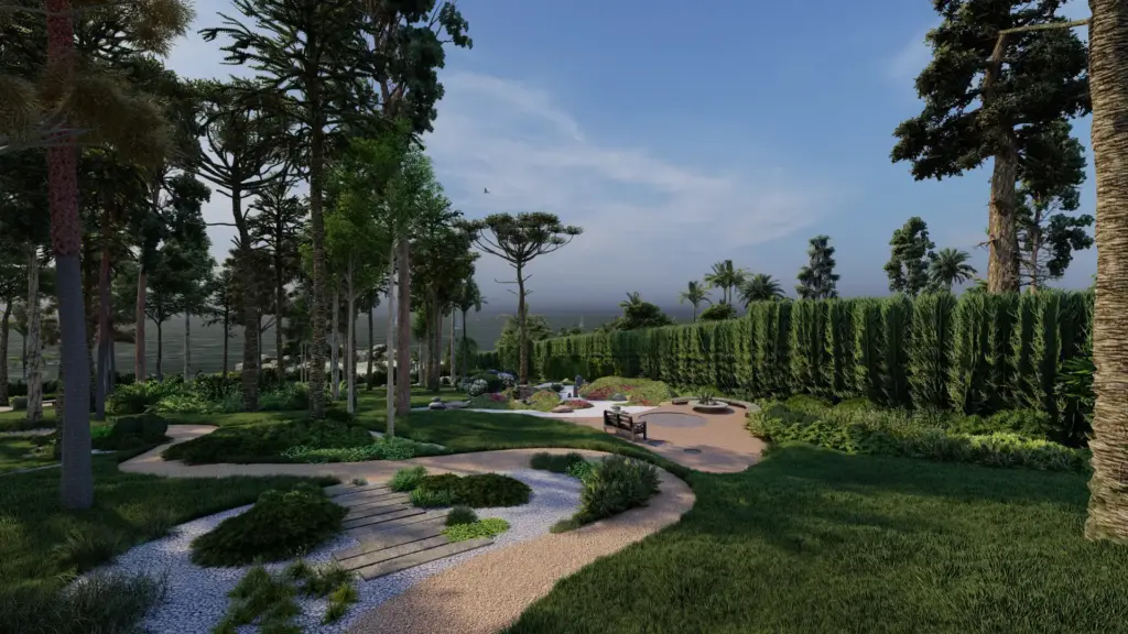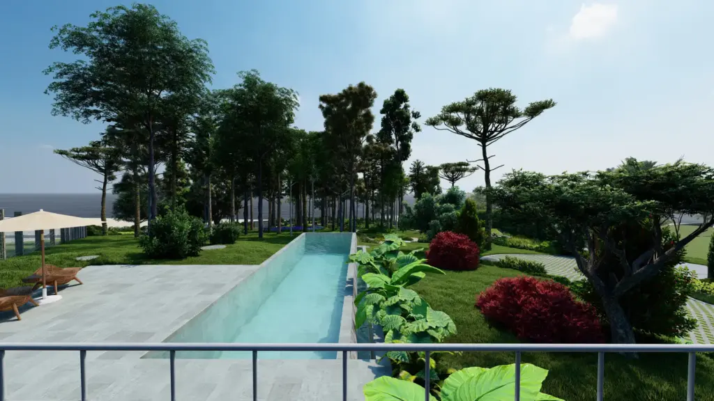 Te mostramos las diferentes zonas de relajación, jardines zen, senderos tranquilos y una espectacular piscina infinita que se funde con el horizonte del mar.